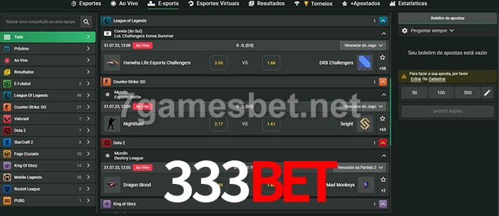 O 333bet oferece uma grande seleção de opções de apostas em e-sports com probabilidades competitivas